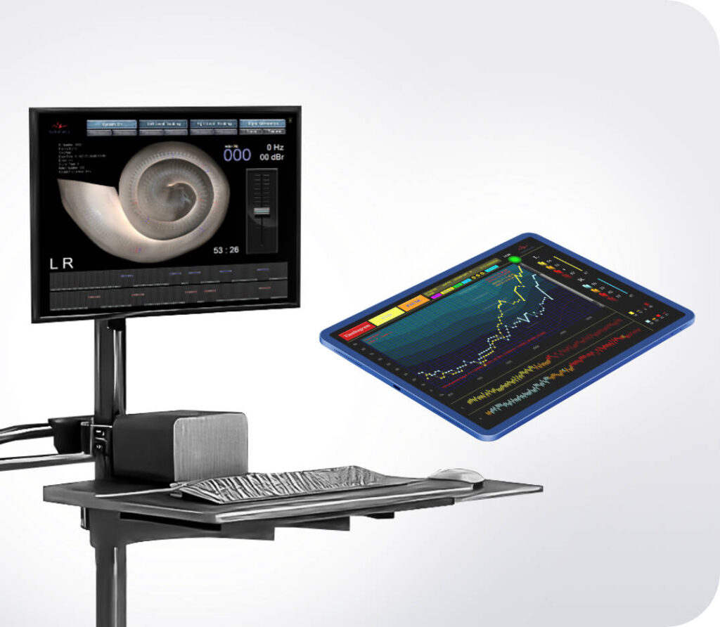 Tinnitogram is an AI driven fine grain audiometer that automatically measures 67 frequency bands (ranges) versus the current standard of 6 to 11 frequency ranges. Tinnitogram provides doctors a high resolution view of a patient’s hearing thresholds, helping uncover areas of “hidden hearing loss” and identifying tinnitus markers to provide better treatment options for better patient outcomes.